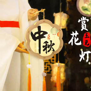 中秋节diy手工礼物木质玉兔灯笼材料包儿童幼儿园手...