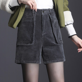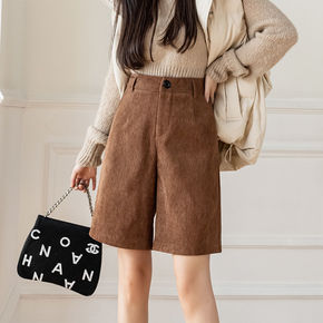 灯芯绒短裤秋冬2021新款韩版宽松女裤显瘦高腰裤小...