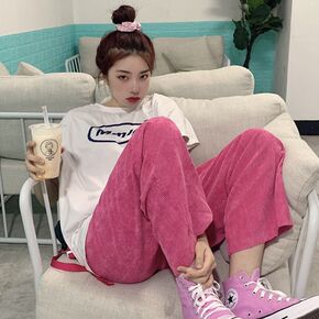2020春夏新款裤子女学生韩版宽松直筒灯芯绒休闲裤...