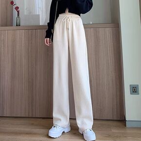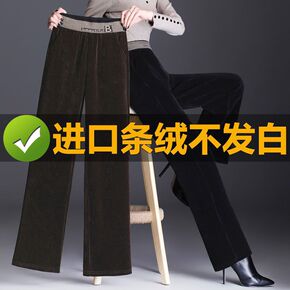 灯芯绒裤子女春秋新款高腰宽松直筒条绒雪尼尔休闲拖地...