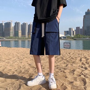 工装五分裤男夏季ins日系复古灯芯绒休闲裤学生短裤...