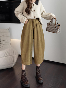 港风复古松紧腰显瘦灯芯绒阔腿裤女2021新款纯色百...
