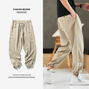 坠感阔腿工装裤男韩版潮流日系大口袋宽松休闲九分裤直...