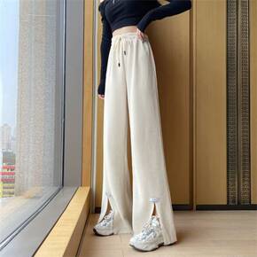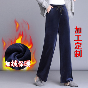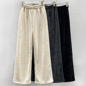 金丝绒阔腿裤2021秋冬高腰加绒加厚休闲女裤银丝条...