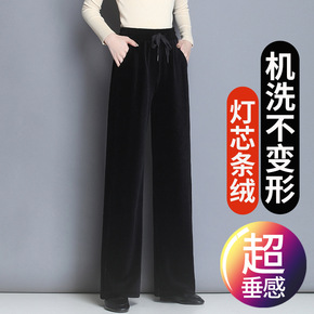 丝绒阔腿裤女高腰垂感春秋灯芯条绒裤子女秋冬宽松大码...