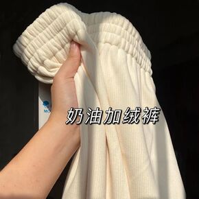 2021冬加绒条绒阔腿裤女宽松加厚条绒坠感直筒长裤...