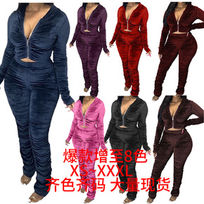 欧美欧美性感女装 速卖通独立站欧美 褶皱纯色拉链两...