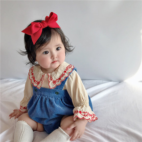 2019度假风奶白色粗条坑灯芯绒绑带可爱甜美短款白...