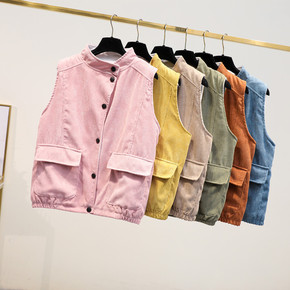 现货 灯芯绒马甲女2022春秋新款复古文艺韩版无袖...