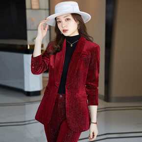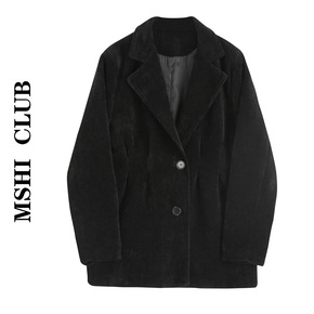 MSHI CLUB灯芯绒黑色西装裙女秋装新款单排扣...