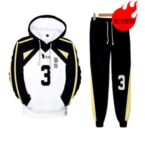 秋冬套装 动漫排球少年cos服 枭谷周边带帽卫衣长...