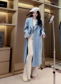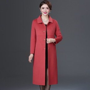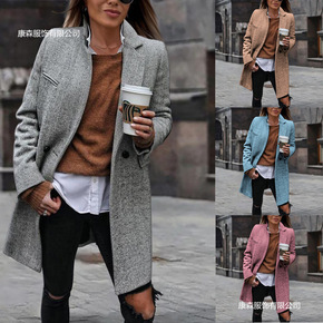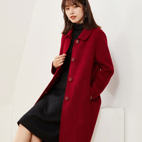 2020冬季新款经典大翻领毛呢外套中长款羊毛双面呢...