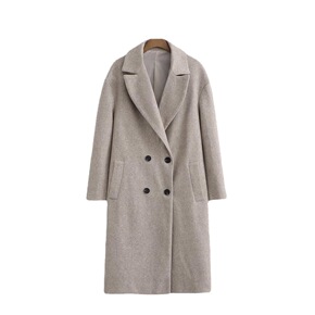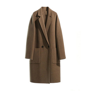 2021双面羊绒新款大衣女宽松简约羊毛呢休闲大衣外...