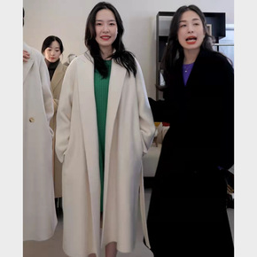 秋冬新款双面呢大衣女 韩版羊绒大衣外套加厚手工羊毛...