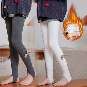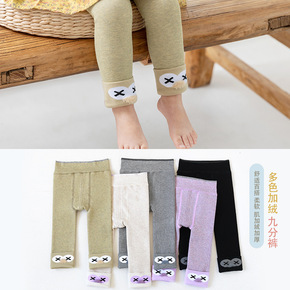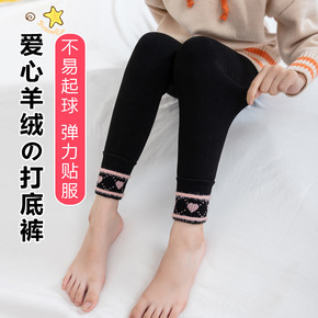 女童打底裤秋冬季韩版纯色爱心儿童打底裤加绒加厚保暖...