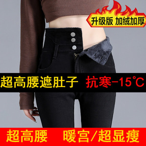 加绒加厚棉质gao弹软料牛仔裤 女士简约修身铅笔裤...