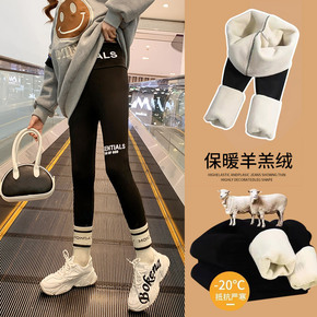 女童加绒鲨鱼裤秋冬中大童一体绒打底裤外穿冬季女孩加...