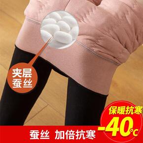 蚕丝加绒打底裤女外穿高腰紧身小脚裤女冬新款显瘦保暖...