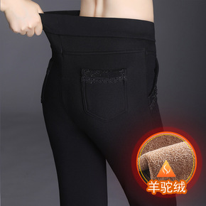 加绒打底裤女秋冬季外穿高腰中老年大码显瘦加厚保暖妈...