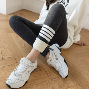 Q90617-侧条纹羊羔绒加绒打底裤-#ZE9-2...