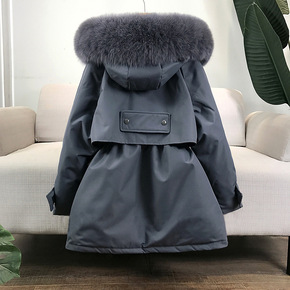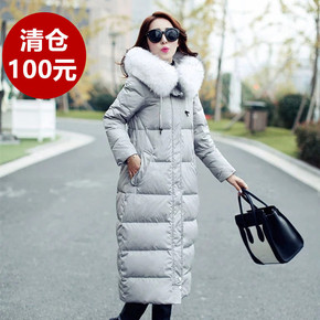 2020韩版新款大码胖mm肥白貉子毛领长款过膝羽绒...
