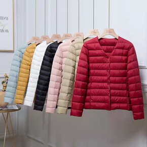 2021秋冬新款轻薄羽绒服女短款时尚韩版圆领白鸭绒...