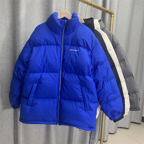 2021冬新款韩版克莱因蓝加厚男女情侣款羽绒服女短...