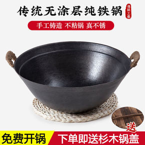 正宗章丘铁锅老式家用手工锻打炒锅无涂层不粘圆底炒菜...