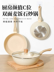 石锅麦饭石不粘锅的炒菜锅家用平底锅无涂层煎锅电磁炉...