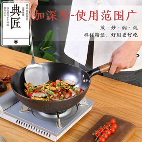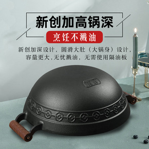 铸铁锅铁锅双耳老式家用炒菜锅生铁锅加深炒锅煤气灶不...