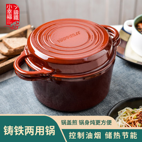 小幸福两用铸铁珐琅锅欧式炖锅家用多功能煲汤锅炖煮煎...