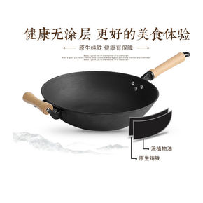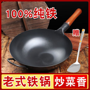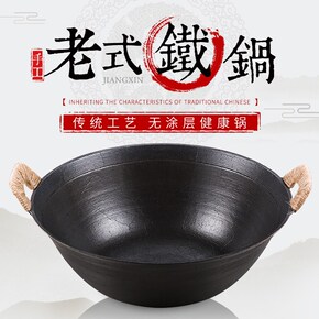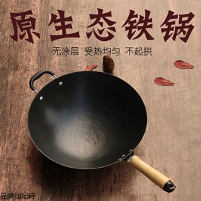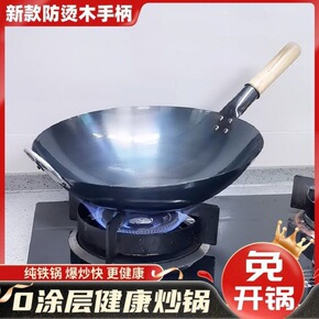 铁锅手工传统炒菜锅老式铁锅家用不粘锅无涂层燃气灶爆...