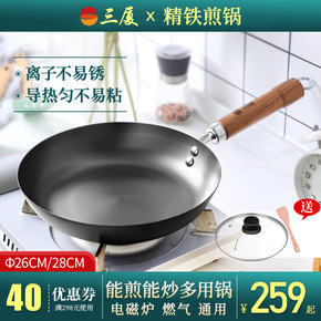 三厦 煎锅不粘锅家用煎饼锅精铁锅无涂层铁锅牛排锅煎...