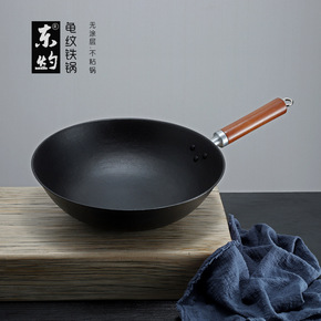 东灼 平底生铁炒锅 龟纹老铁锅 家用无涂层电磁炉燃...