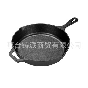 户外野营铸铁煎锅野炊烧烤平底锅家用耐热煎炒锅不粘煎...