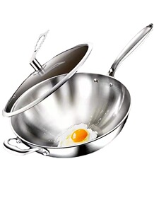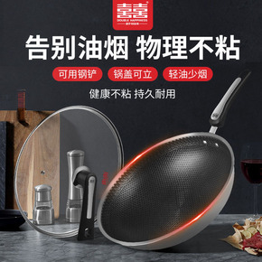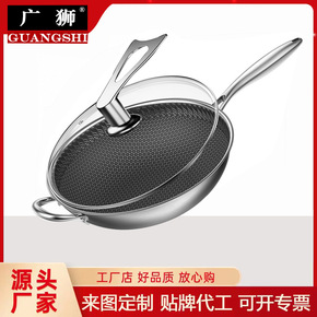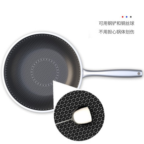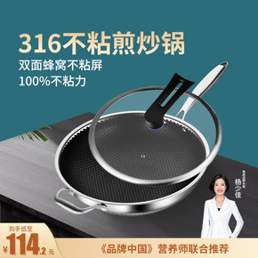 德国316不锈钢炒锅平底蜂窝不粘锅家用煤气灶适用电...