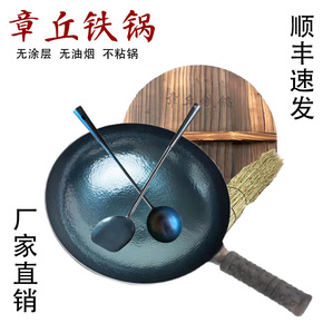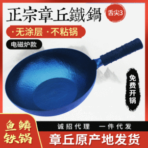章丘手工锻打纯铁锅批发一件代发厂家地摊通用型无涂层...
