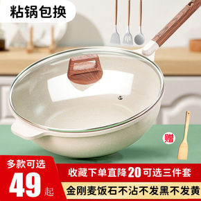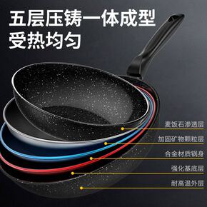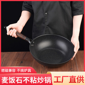麦饭石锅不粘锅炒锅家用炒菜燃气灶适用韩国平底麦石饭...