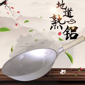 铝炒锅不粘锅老式加厚无涂层锅纯铝锅家用厨房炒瓢炒菜...