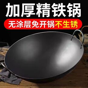 铁锅老式炒锅燃气灶适用商用厨师炒菜锅超轻薄无涂层不...