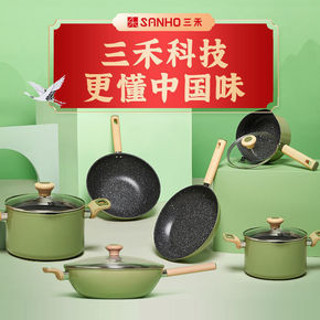 新款麦饭石不粘锅四件套加厚铁锅套装燃气电磁炉通用炒...