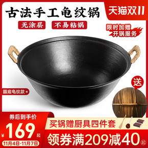 乘龙 家用手打锅炒锅 老式双耳铁锅酒店餐馆燃气铁锅...