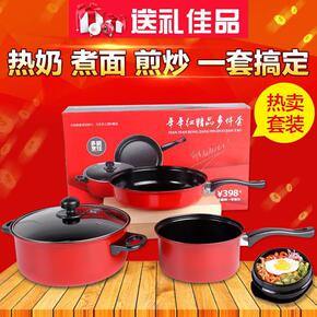 厂家直销韩式不粘无油烟炒锅燃气电磁炉通用礼品套装锅...