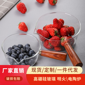 工厂现货耐高温玻璃小奶锅木柄早餐单柄锅家用燃气泡面...