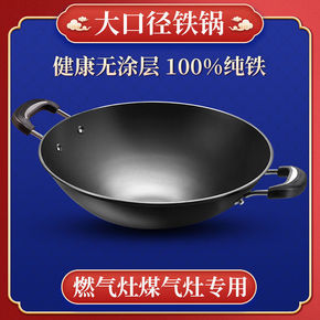 双耳铁锅家用炒菜锅燃气灶专用酒店炒锅老式商用无涂层...