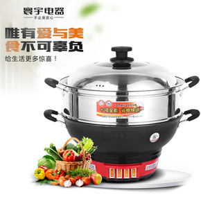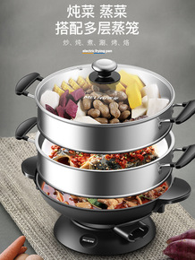家用铸铁真不锈多功能电热锅加厚电火锅炒菜蒸煮电炒锅...