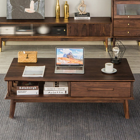北美黑胡桃木方形茶几全实木北欧简约客厅家具小户型设...