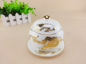 包邮餐厅酒店陶瓷餐具黄金龙隔水炖盅燕窝盅汤盅罐翅盅...