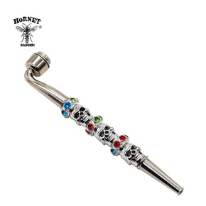 新款彩色珐琅镶珠三个骷髅金属烟斗 带盖帽 便清洗携...