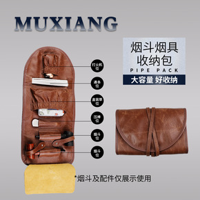 木香头层牛皮卷叠型烟斗包烟丝烟具包烟斗配件旅行便携...